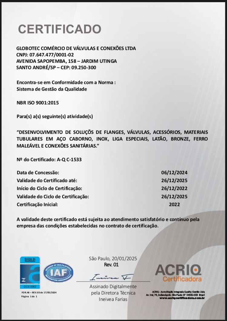 GLOBOTEC COMÉRCIO DE VÁLVULAS E CONEXÕES LTDA